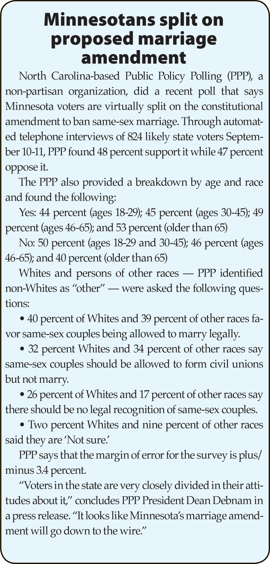 Moody is aware of the backlash President Obama received because of his statement supporting same-sex marriage in May. “Most Black clergy came out and really had problem with it,” but Moody surmises that those ministers who support the Minnesota marriage amendment have “narrow viewpoints.”
